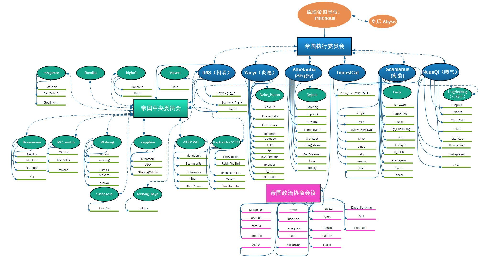 服务器的所有政策由 7 名执行委 员投票决定。7 名执行委员中,1 名是服主本人,1 名由服主直接任命,剩 下 5 人由全体玩家选举得出。在服务器突破 150 人后,会追加 18 人的中 央委员,在服务器突破 600 人后,会继续追加 144 名的人民委员。执行委 员每月 15 日选举,于次月 1 日上任。并对服务器下个月追加的 mod进行投票,以 及在未来的一个月内领导服务器发展